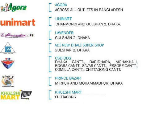 Enjoy 2% Cashback* all year round at the following leading supermarkets across Bangladesh.